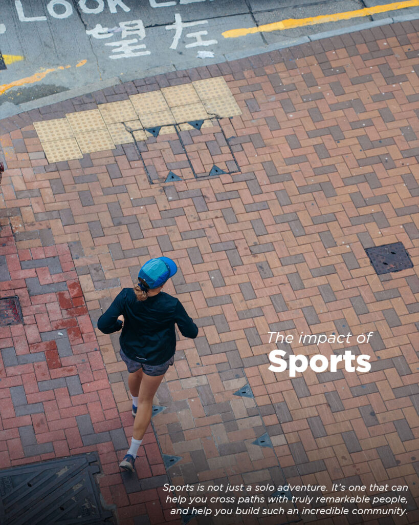I see sports and the commitment to it as a form of self-love. I think especially in a city like Hong Kong, it’s important to make time for yourself and show that you have the discipline and motivation to better yourself, while also allowing yourself the time to rest. Sports can support your growth as a person massively in terms of confidence and putting yourself out there. Through this process, I’ve realised it’s not just a solo adventure. It’s one that can help you cross paths with truly remarkable people, and help you build such an incredible community.